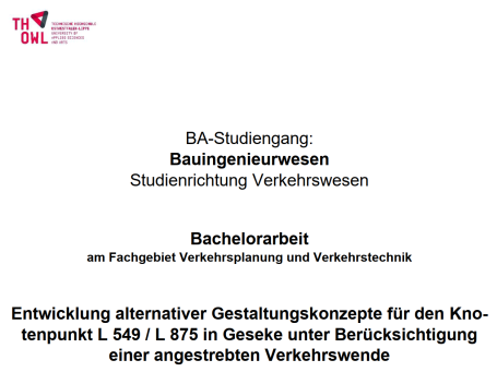 Svenjas Bachelorthesis beschäftigt sich mit alternativen Gestaltungskonzepten für Knotenpunkte unter Berücksichtigung der angestrebten Verkehrswende.